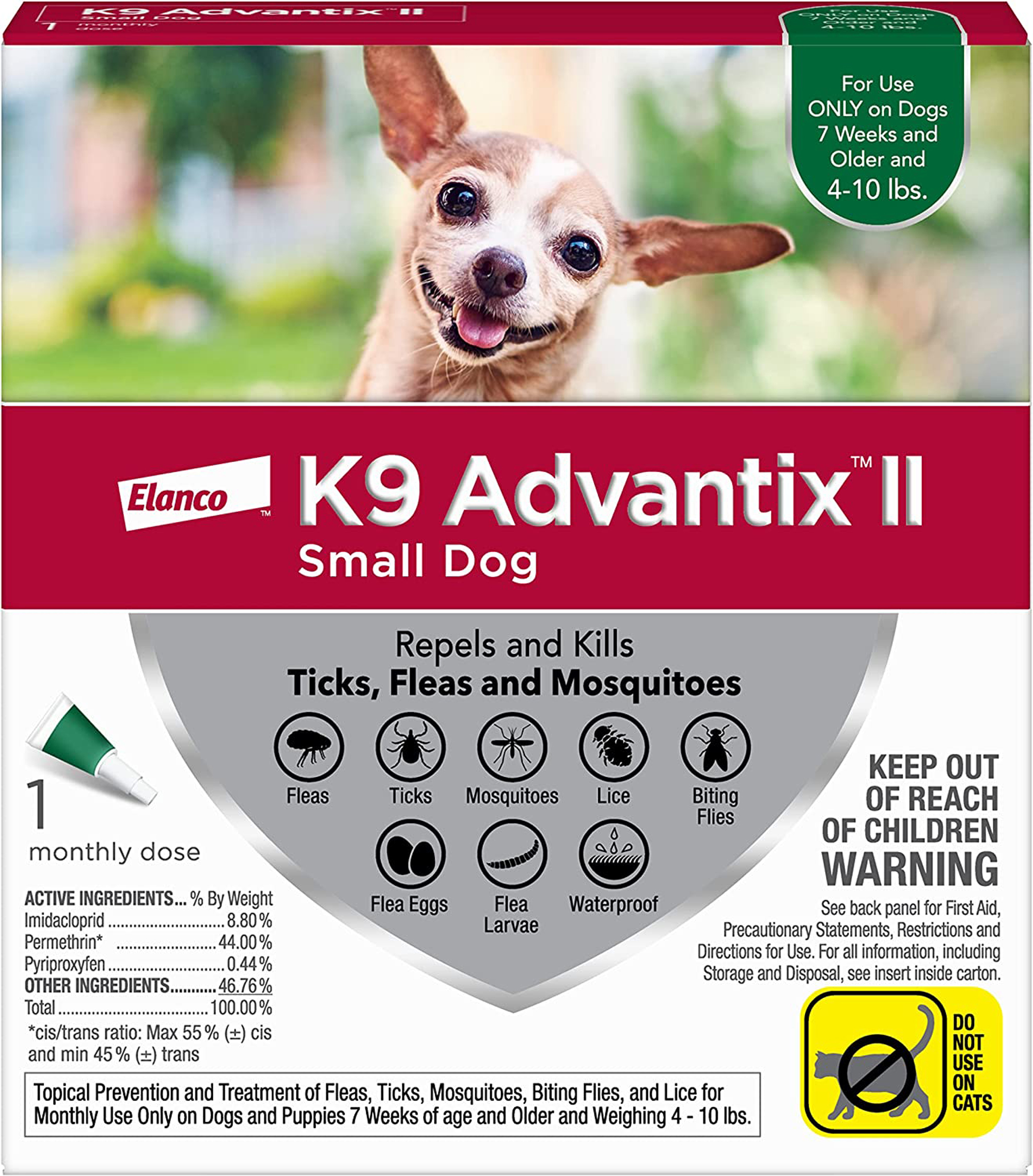 Unlike most competitors, K9 Advantix II not only helps repel fleas and ticks for four weeks; it also kills and repels mosquitoes that may transmit heartworm disease and West Nile virus.