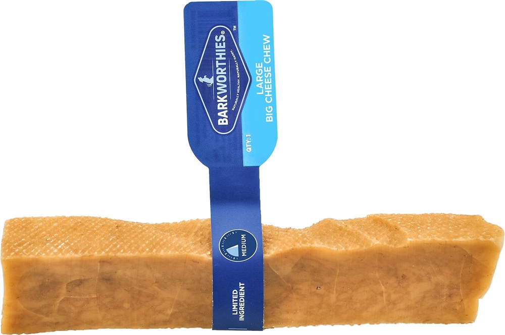 Easy to digest formula is grain-free??perfect for dogs with food allergies. Great way to keep aggressive chewers and large breed dogs busy for hours.Made without the use of artificial ingredients or preservatives. This limited ingredient, high protein treat is a fantastic option for adult dogs who love to chew. Tough texture and surface are perfect for scrubbing away tartar and plaque from the gum line.Keep your active chewer busy with Barkworthies Big Cheese Chew Dog Treats. These treats are the perfect all-natural way to reward your little one while also treating them to cleaner teeth and gums! These holistic treats are grain-free, making them the perfect snack for dogs who are allergic to grain or chicken. Use them to keep even the most aggressive chewers busy for hours. Plus, these tasty treats feature an abrasive texture that not only makes them highly durable but also works to clean your pet??s teeth and gums.