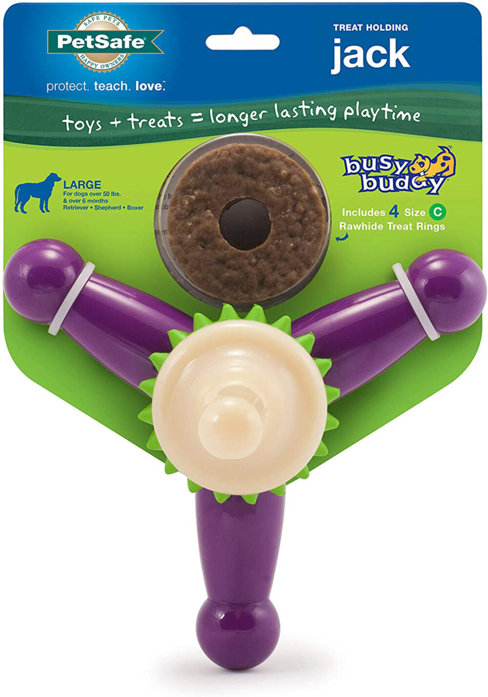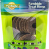 This bagel shaped granulated rawhide chew is filled with our delicious peanut butter filling. Abrasive chewing promotes dental health.