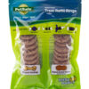 The PetSafe Busy Buddy value pack rings combine natural rawhide and peanut butter rings in a resealable bag. The value pack rings are available in sizes A/small, B/medium and C/large. The value pack rings offer variety as well as value. Treat rings are companion treats for the Busy Buddy Toys – Bristle Bone, Bouncy Bone, Jack, Nobbly Nobbly and animals (turtle, hedgehog, unicorn and dinosaur).