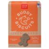Cloud Star Wag More Bark Less uses only 5 all-natural in their Oven Baked with Crunchy Peanut Butter Cookie Recipe Dog Treats to create the best-quality treats for your canine companion. Mouthwatering like crunchy peanut butter and chunks of peanuts are gently mixed and slow-baked to perfection in fun, smiling star, sun, and cloud shapes. Theyre made for dogs of all sizes to crunch and enjoy, and they dont contain any dairy, corn, soy, or white potatoes. So go ahead and indulge your furry friend with a delicious, satisfying treat thats only made with the good stuff.Whole wheat flour, peanut butter, canola oil, mixed tocopherols (natural preservative).