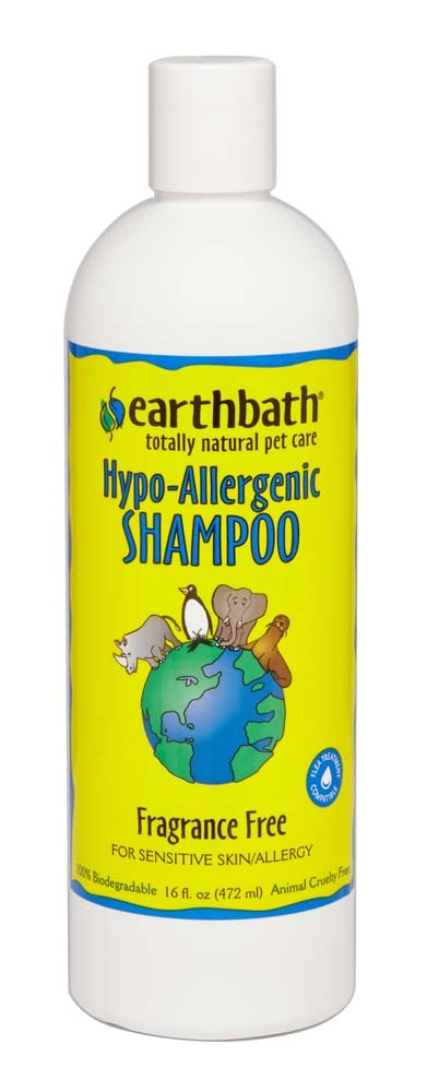 Some of our beloved furry friends have skin allergies and sensitivities that can make it difficult to get clean and remain simultaneously happy. (Puppies & kittens, older pets, certain breeds and allergy prone animals often benefit from a hypo-allergenic formulation.) earthbath solved this dilemmea by blending the finest into this mild, hypo-allergenic shampoo. Per vets orders it is intentionally free of any fragrance or coloration. Will not wash off topical flea applications. Safe for all animals over 6 weeks.Purified water, extra-mild renewable coconut- based cleansers, aloe vera, xanthan gum, olive oil squalene (natural preservative). All are natural, 100% biodegradable, and gentle.”