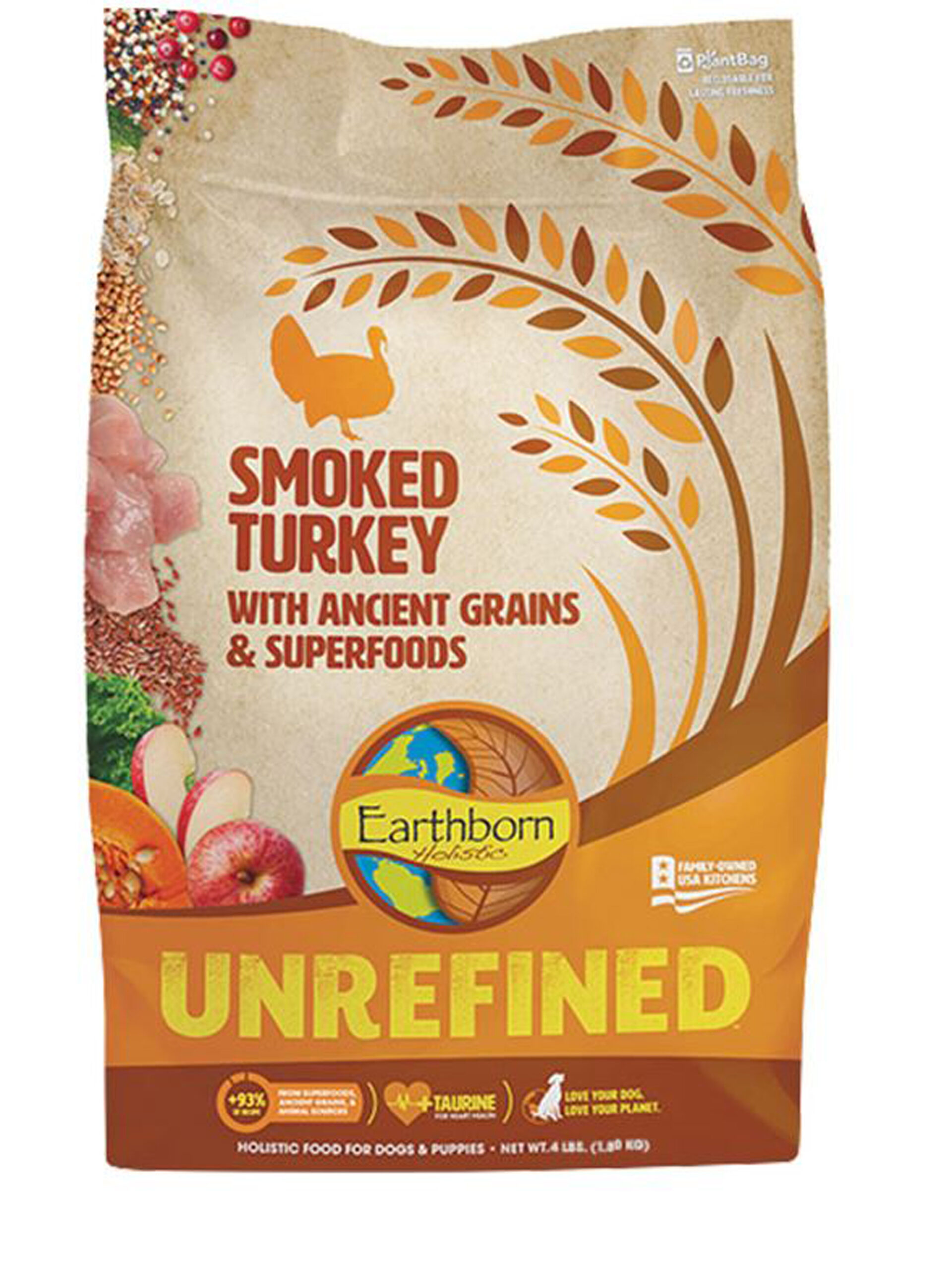 Your dog will go head over tail for Earthborn Holistic’s Unrefined Smoked Turkey with Ancient Grains & Superfoods Dry Dog Food. This recipe features ancient grains that are harvested from trusted sources like family farms. It also features a nutritious blend of superfoods and smoked turkey as the #1 ingredient for a high-quality protein source to fuel your furry friend’s muscles! It’s just full of the good stuff and none of the stuff that might upset your buddy’s tummy like peas, lentils, legumes, chicken or potatoes. And since your dog’s food should be as true as the bond you share, you won’t find any fillers, artificial colors, flavors or preservatives in here!