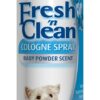 Cologne Spray Original Fresh Clean Scent Keeps Pets Smelling Fresh And Clean. Recommended For Use After Grooming And Between Grooming.Water, Solvent (Alcohol), Emulsifier (Triethanolamine), Preservative (Sodium Benzoate), Fragrance, Propellant.”