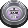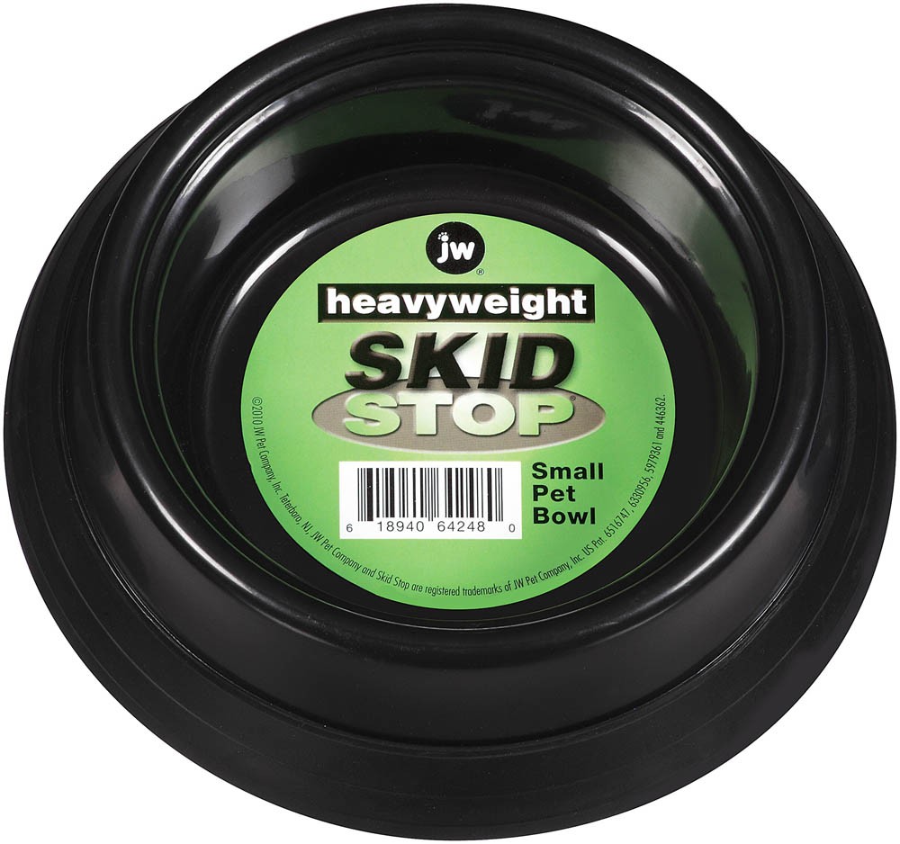 The Heavy Weight Small Skid Stop Bowl is a heavy duty plastic bowl for small pets. The Skid Stop bowls were designed with a rubbery base to prevent the bowl from sliding or moving around on the floor while the pet is eating. The rubber bottom creates a firm grip on slippery surfaces to prevent the bowl from moving or tipping, this also helps to prevents spills. Skid Stop bowls are dishwasher safe and are rust and bacteria resistant. Available in Assorted colors.