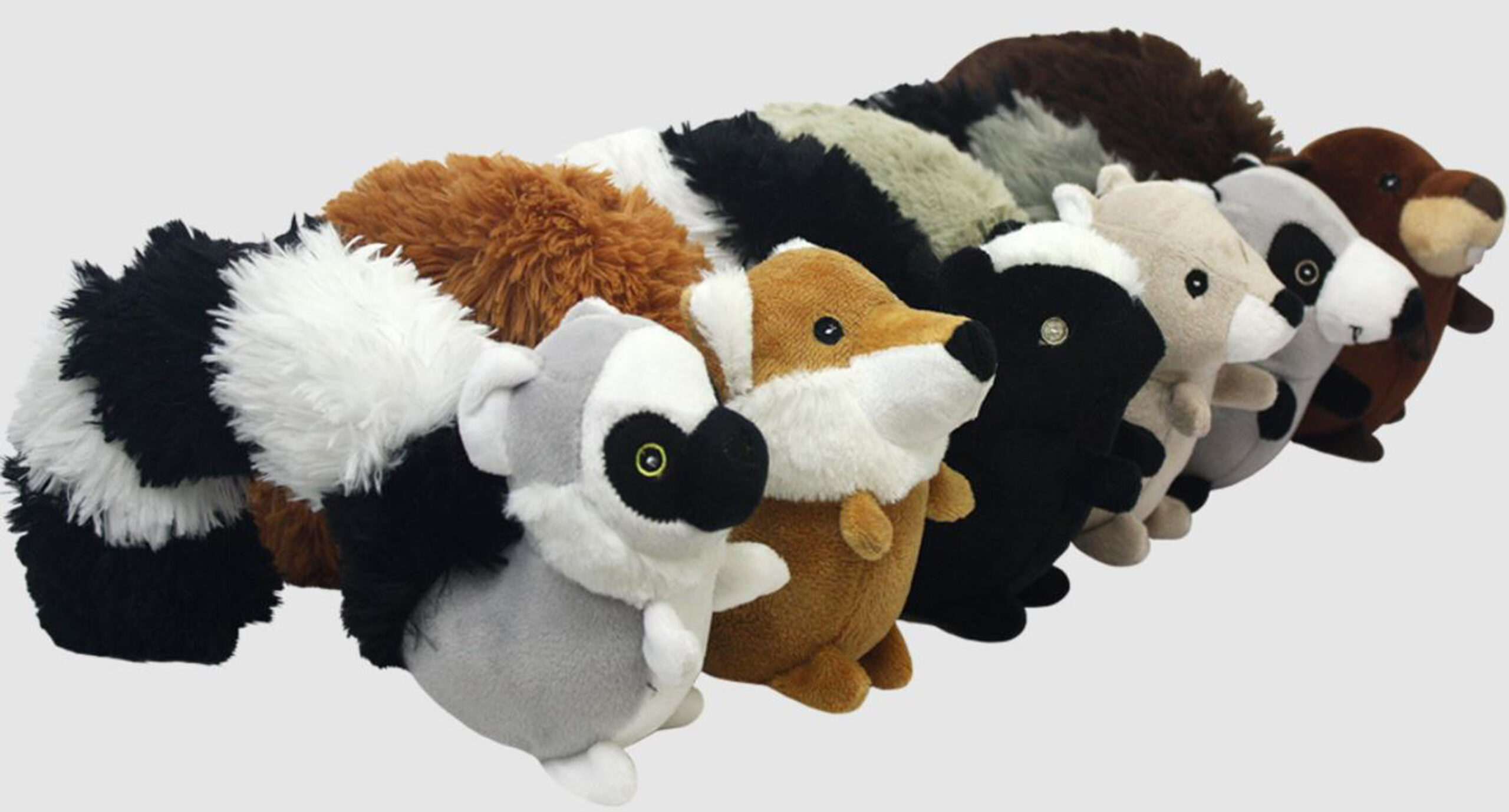 Cur-Tails are perfect for customers with dogs who love squeakable toys because the adorable curled tail is one giant squeaker! Whether tossing or cuddling, these would be any pups favorite go-to toy. This cute cast of characters include a lemur, fox, skunk, squirrel, raccoon and beaver.