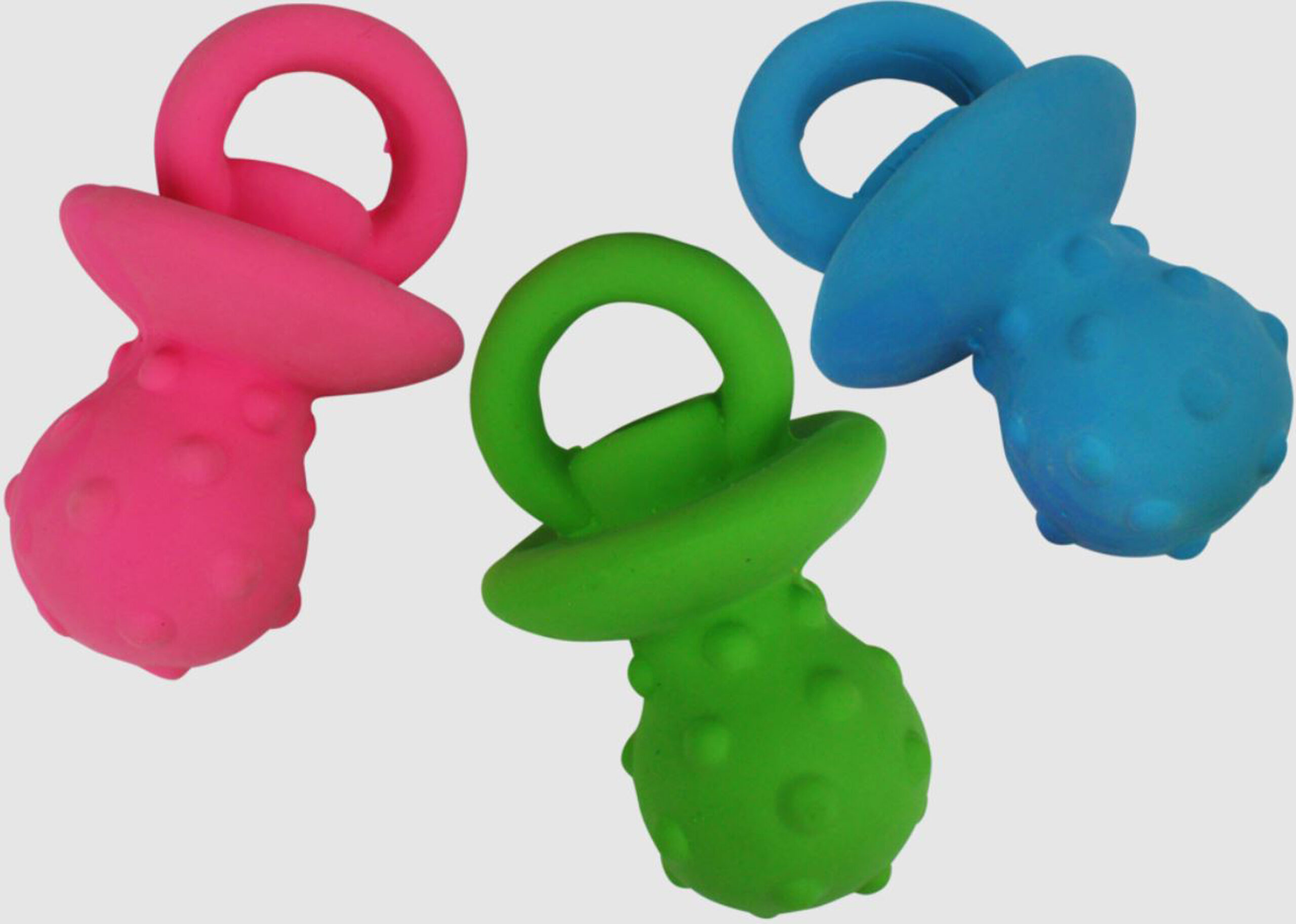 Minipet by Multipet is our line of small toys designed for small dogs, but we know big dogs occasionally love the comfort of a smaller plush toy too! These Pacifiers are made of latex and squeak when squeezed! Their small size makes them easy to grab, toss, and cuddle! With fun, bright colors these small Pacifiers are sure to encourage and entice play.
