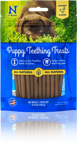 Puppy Teething Treats from N-Bone are designed to meet the specific chewing needs of teething puppies; The flexible and pliable design of the Puppy Teething Treat will provide a satisfying chew treat that will not damage a puppy’s delicate and developing teeth.