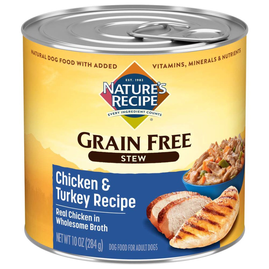 Nature’s Recipe Grain Free Chicken & Turkey Stew is healthy dog food made with premium ingredients including real chicken and turkey, high-quality protein sources that can be easier on your dog’s stomach. Wholesome sweet potatoes and green beans act as highly digestible, grain free carbohydrate sources for sustained energy, and all the goodness is served in a hearty gravy. With a taste that dogs love plus the nutrition they need, this healthy grain free dog food will help your best friend thrive!