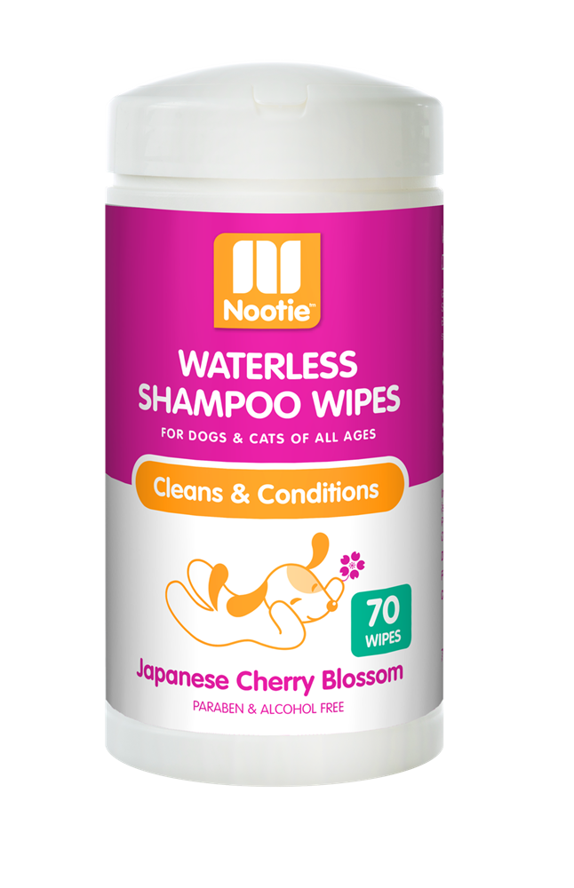Give your pet a thorough daily cleaning with Nooties Waterless Shampoo Wipes. With the long-lasting fresh scent of Japanese Cherry Blossom, your pet will maintain a just-bathed cleanliness and fresh scent every day.Made with natural Cleans and conditions for a healthy coatParaben and alcohol freeSafe to use along with topical flea & tick productsNo sulfates or harsh chemicalsNo water neededFor cats and dogs of all agesNot tested on animalsPurified Water, Polyquaternium-7 (conditioner), AOS 40, CABLC, Glycerin (moisturizer), Octylphenol Ethoxylate, Aloe Vera Gel, Oatmeal Extract, Phenoxyethanol (preservative), Fragrance.”
