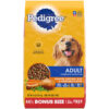 The PEDIGREE line of nutritionally balanced food helps ensure your dog can live their happiest and healthiest life. Our protein rich recipe is made with real meat, and 25% more protein than Adult Complete Nutrition. It’s always 100% complete and balanced for canines with no added sugar, no artificial flavors, and no high fructose corn syrup. Let PEDIGREE nourish your dog’s skin and coat with essential fatty acids and minerals, and help clean your dog’s teeth with unique crunchy kibble. Because with all the goodness that dogs share with us, we all want to do what’s best for them.