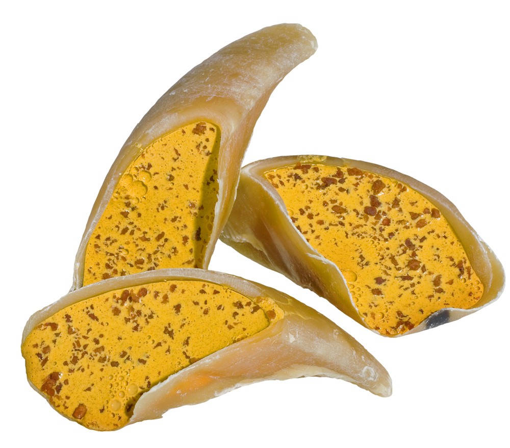 Natural beef hooves are trimmed roasted and stuffed with our tasty cheese filling.to produce this enticing treat. Beef Hoof. Fill Inch g Corn Syrup, Water, Chicken Meal, Sugar, Chicken Fat (preserved with Mixed Tocopherols), Salt, Propylene Glycol, Agar Agar, Bacon Bits (Textured Vegetable Prote Inch , Vegetable Oil, Salt, Natural Flavor, Hydrolyzed Yeast, Hydrolyzed Vegetable Prote Inch , Dextrose), Vegetable Glycer Inch , Cheese Flavor, Titanium Dioxide Color, Potassium Sorbate (a preservative), Citric Acid, Lecith Inch , Natural Bacon Flavor, Sodium Benzoate (a preservative), Yellow 5, Yellow 6. “
