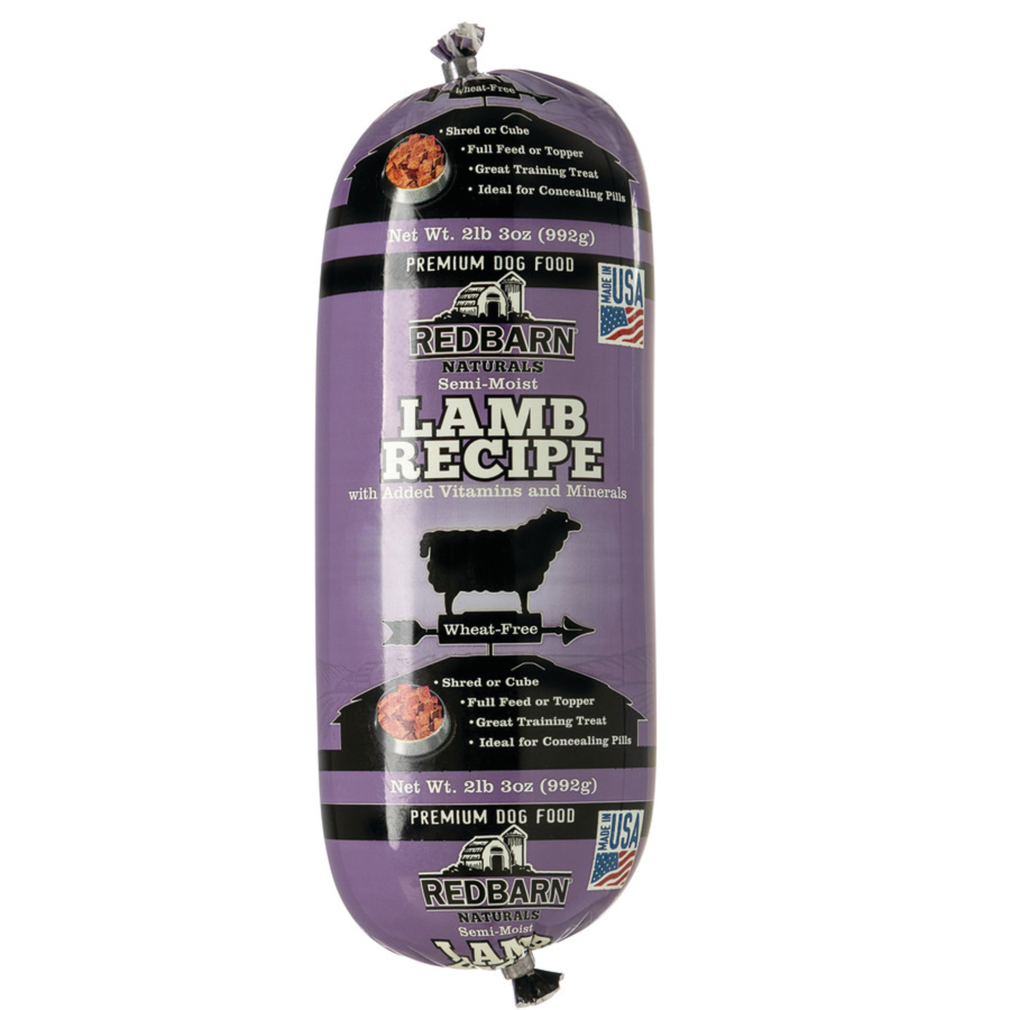 This flavor is wheat free and is ideal for highly allergic dogs. Redbarn dog food is highly versatile and can be used as a complete and balanced meal a protein supplement mixed with dry food as a treat training tool or as an aid for administering medications. Redbarn provides an easy way to feed your dog a healthy meat diet. The cornerstone of Redbarn Premium Food for Dogs is fresh high quality individually hand selected ingredients like choice cuts of fresh meat and wholesome grains (no corn soy or beet pulp). We use over 50% fresh meat which results in an irresistible food rich in natural proteins. Redbarn is 93% digestible-this means your dog will be using all the goodness you provide him with much less clean up for you. The roll is specially prepared and packaged without oxygen allowing it to remain fresh at room temperature without artificial preservations such as BHA BHT or Ethoxyquin. Redbarn is gently cooked in the casing allowing more nutrients to remain. Once opened Redbarn must be treated like the fresh meat it is. Slice seal and refrigerate or freeze for longer storage. Lamb & Rice Food Roll