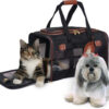 Travel in comfort and style with Sherpa Original Deluxe Carrier. Perfect for traveling by plane or car, for a trip or just to the vet. Patented spring wire frame allows the rear end of the carrier to be pushed down several inches to conform to under-seat requirements. The carrier has mesh panels for ventilation, locking zippers to prevent accidental escapes, and includes a seat belt security strap which doubles as a luggage strap. Top and side entry options make it much easier to comfortably load pets in the carrier. A large side zippered pocket can hold your important pet travel documents and anything else your pet may need. The no-slip shoulder strap is adjustable and features a padded support for comfort. A soft, cozy, removable, and machine-washable faux lambskin liner is included. Sherpa replacement liners are also available and sold separately. Approved for use on most major airlines.