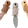 The Donut Crinkler dog toy is made with soft textured plush. Comes in a donut shape for easy pick-up. Crinkle paper is in the arms, leg and tail. There are 3 assorted characters which come with squeakers.