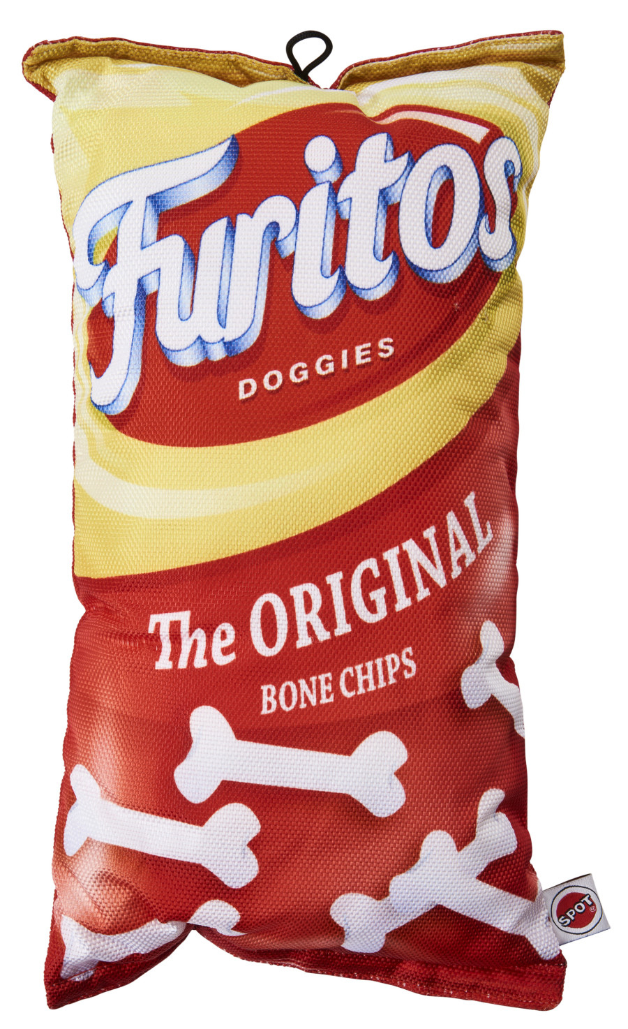 Fun Foods Chips parodies real chips! Realistic designs on durable fabric with crinkle paper and a squeaker inside! 100% fun and 0 calories! Jumbo size for even more fun! Durable fabric|Crinkle paper|Squeaker