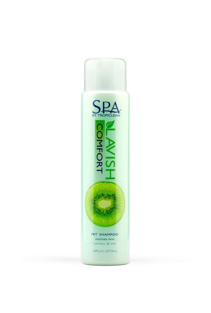 This rich combination of moisturizing kiwi and essential vitamins is designed to leave your pets skin and coat feeling silky smooth. The SPA Comfort aromatherapy effects of lavender and the soothing effects of hydrolyzed oatmeal combine to relieve stress and calm the soul. For maximum efficacy, use in combination with SPA by TropiClean Comfort Aromatherapy Spray and Nourish Conditioner. Water (Aqua), Avena Sativa (oatmeal), Actinida Chinesis (Kiwi), Hydrolyzed Wheat Protein, Cucumis Sativus (Cucumber), Mild Coconut Cleanser, Lavndula Angustifolia (Lavender), Zingiber Officinale (Ginger), Vitamin E, Panthenol (Pro-Vitamin B5).”