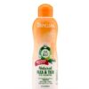 TropiClean Flea & Tick Shampoo Plus Soothing kills fleas, ticks and mosquitoes by contact, while cocoa helps to soothe irritated skin. This natural essential blend contains natures most powerful pest fighting , maximized with lemongrass and sesame oil for long lasting effects. Our natural formula is safe enough for routine pet baths.Clove Oil, Lemongrass Oil, Cedarwood Oil, Cinnamon Oil, Sesame Seed Oil, Sodium Lauryl Sulfate (Natural), Water, Xanthan Gum, Cocoa, Glycerin.”