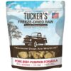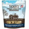 Tuckers Complete & Balanced Pork-Lamb-Pumpkin Formula is formulated to meet the nutritional levels established by the AAFCO Dog Food Nutrient Profiles for All Life Stages, including growth of large size dogs (70lbs or more as an adult). Pork, Lamb Heart, Pumpkin, Pork Marrow and Bone, Mixed Tocopherols (preservative), Rosemary Extract, Taurine, Zinc Amino Acid Complex, Vitamin E Supplement, Calcium Carbonate, Manganese Amino Acid Complex, Copper Amino Acid Complex, Zinc Sulfate, Calcium Pantothenate, Copper Sulfate, Manganese Sulfate, Vitamin A Supplement, Vitamin D3 Supplement, Vitamin B12 Supplement, Calcium Iodate, Riboflavin Supplement, Lactobacillus Acidophilus, Lactobacillus Casei, Bifidobacterium Animalis and Lactobacillus Reuteri”