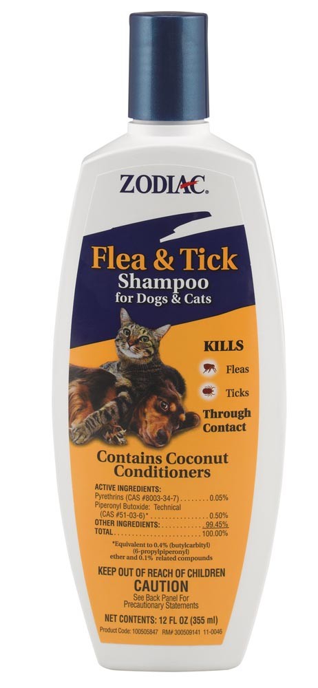 Zodiac Flea & Tick Shampoo for Dogs & CatsPyrethrins 0.05%, Piperonyl Butoxide 0.50%, other 99.45%.”